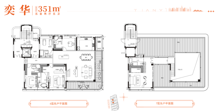 天奕的户型是建面约233㎡起步,几乎都是东西两户。