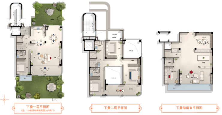 建面约278㎡的下叠,三开间朝南,单层开间足足有11.6米。更惊喜的是,除了南北双院,下叠还创新设计了下沉式庭院——