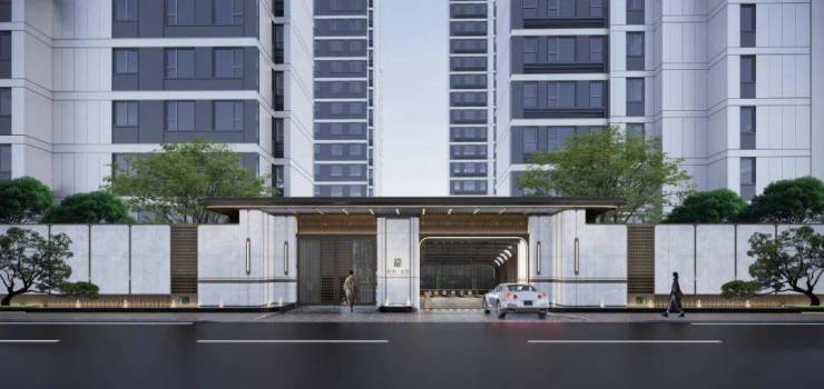 不仅如此,也一改传统中式屋檐的繁琐设计,打造酒店式雨棚,立面搭配大理石及不锈钢材质,更显立体线条和时尚轻奢,给业主营造满满的归家尊崇感。而且,小区北门和东门也都同步提升,与南门在风格设计以及材质选择上都基本保持一致。