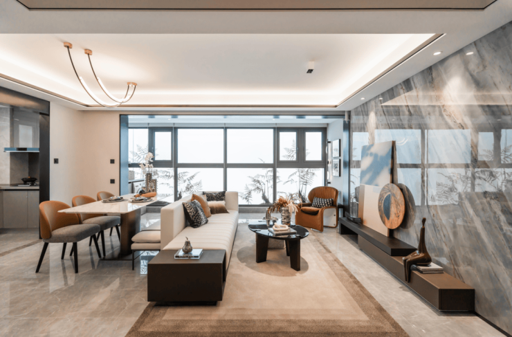 规划的22栋18—19F的小高层产品,现代简约的立面,时尚精致。外立面1—2层采用石材干挂,其他为高档真石漆搭配弹性涂料,局部采用铝型材压条,窗户全部采用三层中空Low—E玻璃,皆选用高品质原材料,诚意满满。