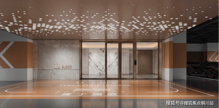 标准层梯厅采用暗夜香槟金色调,在功能性之上注入美学基因,让日常通勤成为一场视觉享受;