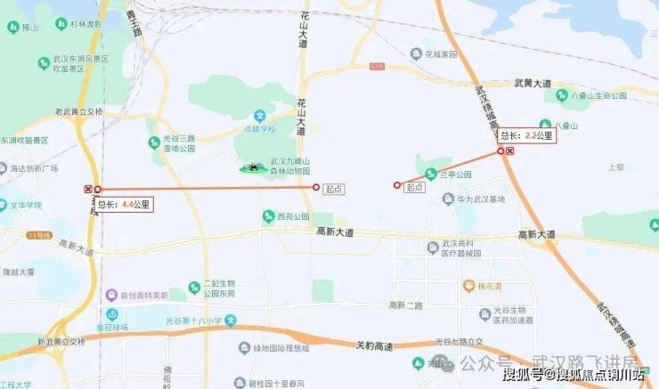 项目位于东湖高新区光谷中心城北区,九峰一路以北,驿山高尔夫内,A地块西侧与东三环线直线距离约4.4公里,东侧与绕城高速直线距离约2.2公里。光谷的四环线和外环线目前是重合的,因此项目可以说三环与四环之间,也可以说靠近外环。