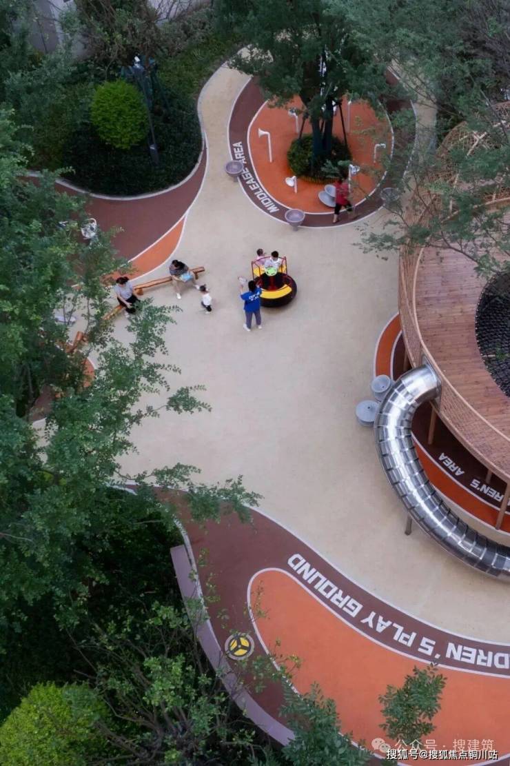 运动、玩耍、散步,不同的铺装为不同的人群打造出特别的小天地,但欢快在这里分不出年龄界限。小孩可以参与到跑道的追逐中,大人也可以去回味跳格子的乐趣。