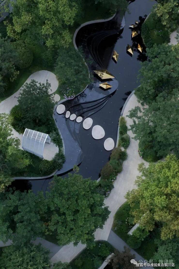 “花溪”也呼应着汉阳十景中“官湖夜月”所描绘的画面——蜿蜒水境,临水赏月,倚廊听歌,亭中小酌,静观水中星星点点随风摇曳,感受穿梭千年的古景新意。