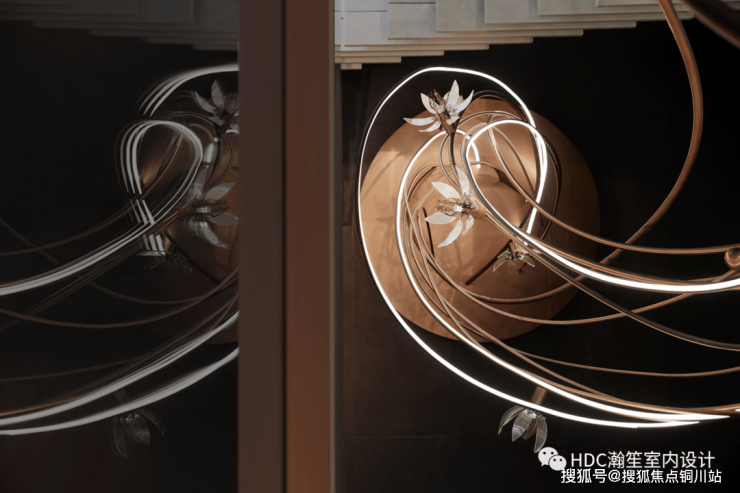 美学中心位于建筑二楼,要抵达目的地,过程的风景如果沁人心脾,令人难忘而觉惊艳,便能够带给人愉悦的感受;在楼梯间的区域,我们在负一层“种”下一颗树,树根盘桓生长往上蔓延,藤蔓上的花朵在动态装置的带动下一开一合,随着音乐律动;瞬间,空间更美,更有活力,或者说,这个代表“生长”的装置艺术品,不仅仅带给我们美的享受,更是在告诉我们,人生的旅途中有着意想不到的惊喜;在这个疫情黑天鹅虽去但心有余悸的时代,无疑是带给我们人生的希望……