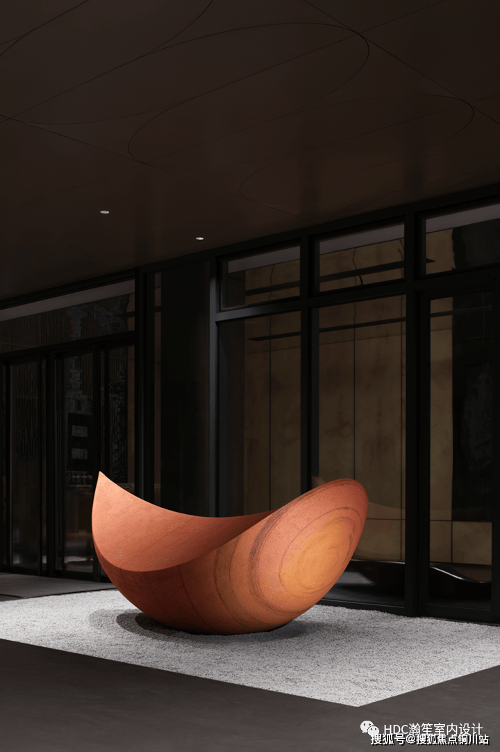 步入美学中心的第一眼,便是我们的“曙之舟”艺术品,名字源自明·罗万象《夕发》诗:“启曙闻清磬,审风开早船”,形似一舟,其色如日出时温暖的低度橘,舟身的深棕色线条如光线般散开,开启了一天最重要的时刻;启曙,也指着曙光带领我们从此时开始,慢慢去领略美学中心的精神内核。