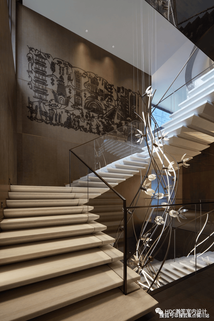 缓缓漫步上楼,如同徐州剪纸技法的工艺品,以金属的材质将徐州老城区的影像摘取,重新设计,用致敬剪纸工艺的方式,使用现代新型材料,表达新旧城市的变迁,留住人们对老城的情怀记忆……