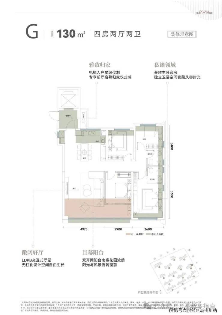 建面约130㎡的高改户型,得房率约98%,豪宅级别的独梯入户,专享私密电梯前厅。