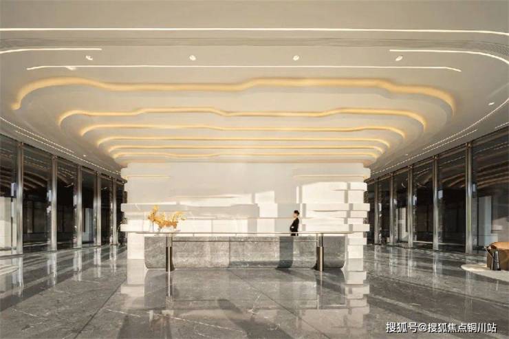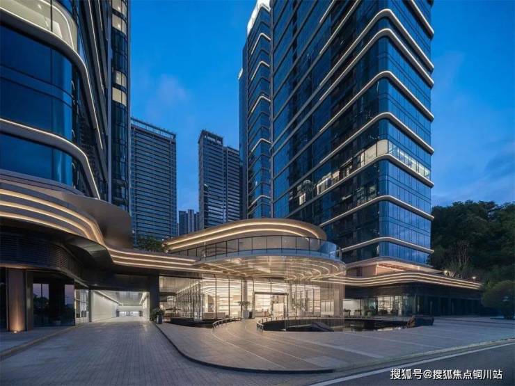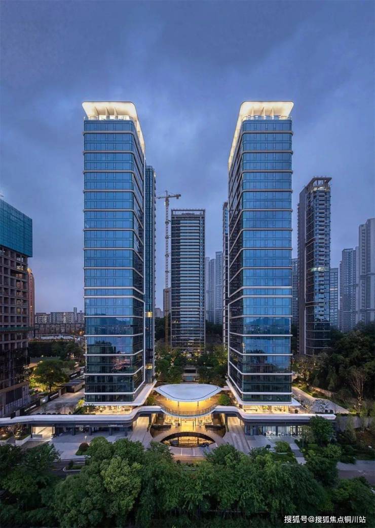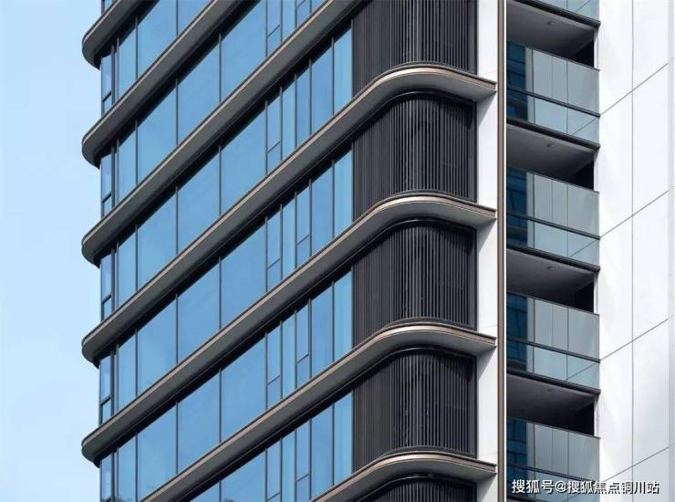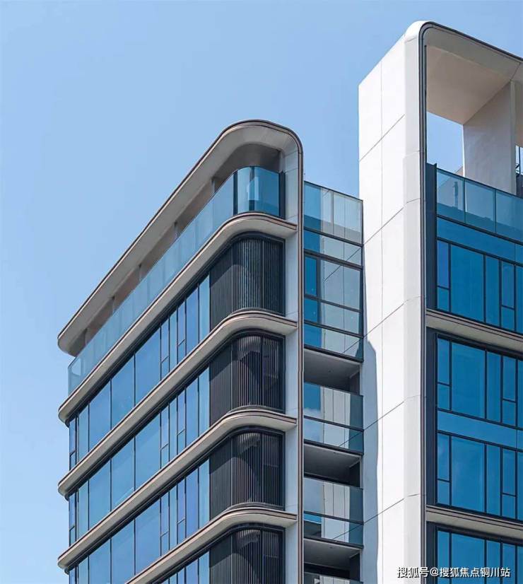 曲面屏立面以弧形玻璃幕墙和超宽玻璃幅面消除竖向分割,呈现“无界屏幕”般的通透感,形式追随功能,直接服务于内部270°观景视野。珍珠白金属线条与精密圆角既体现了新时代工艺品质,白色基调下的点缀色运用也使建筑线条在日光下产生微妙的光泽变化,既不过度张扬亦不消解质感,近人尺度的细腻与远景尺度的质感由此得以并存。为呼应城市尺度和周边环境,沿江界面以北高南低的起伏天际呼应山水,形成整体群像。北侧公寓塔楼140米,南侧住宅100米,不同高度的体量错落有致,与城市景观形成有节奏的对话,以错落有致的群像构筑湘江畔的新城市名片。