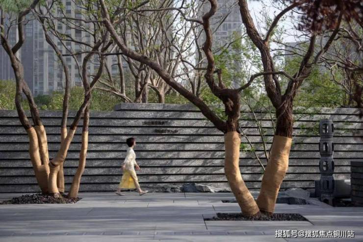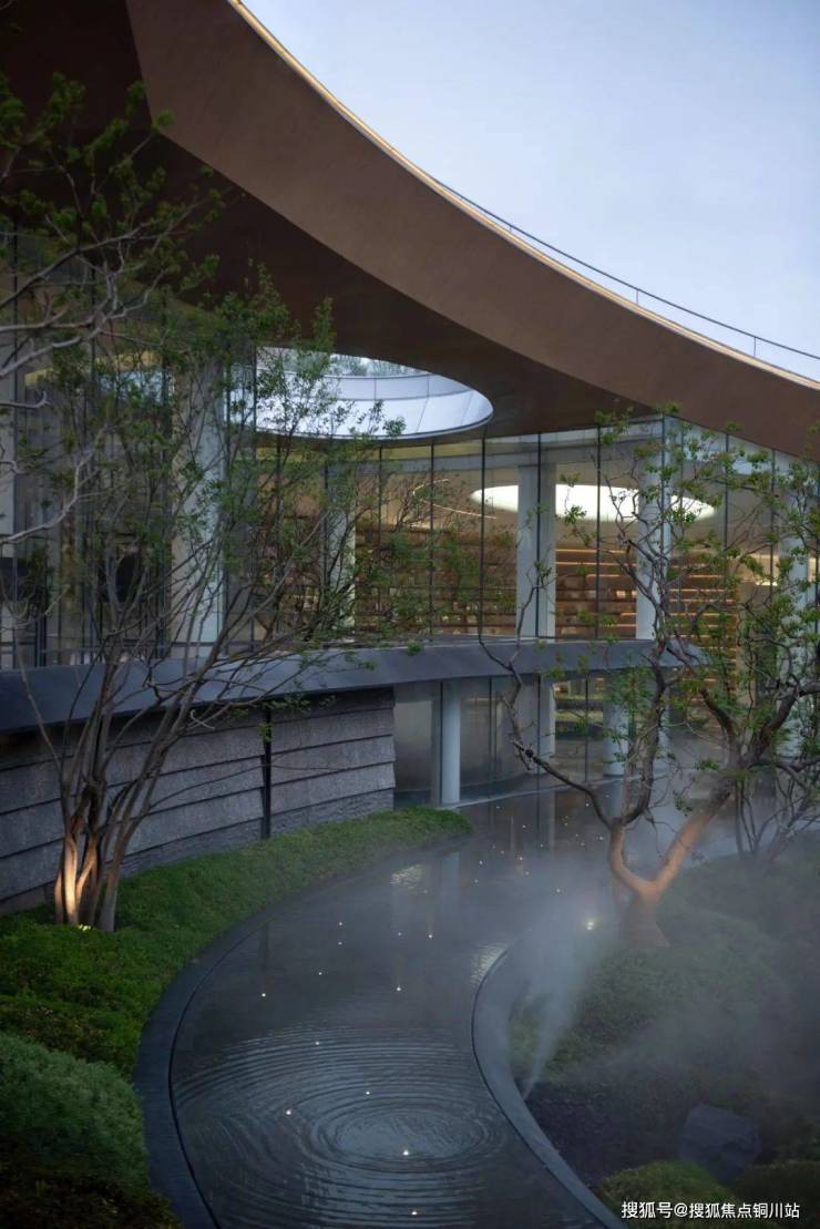 与地铁相接的次入口,40m弧墙以“欲扬先抑”之韵,化都市纷扰为山居序章。乌桕林影婆娑,漏下天光星点,沿曲径引向幽谷。