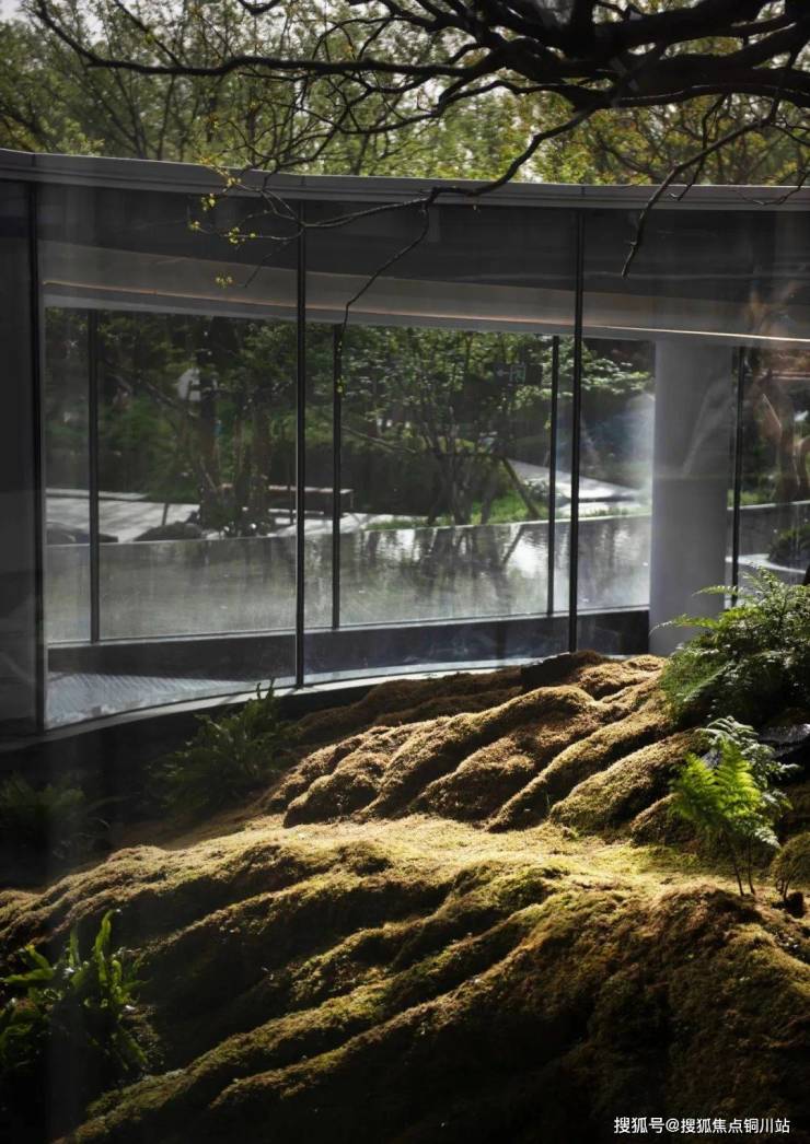 从山谷音乐厅负一楼瞰景,半山翠色如瀑倾泻;