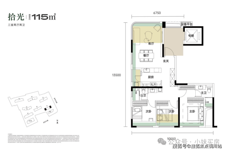 这两个户型,小妹个人认为115平户型的景观效果更好一点,270度全景舱的设计也更赞,并且更小的面积,却有相对更大的南向面宽,以及更高的得房率,相对低一点的总价门槛,预计会更受欢迎。