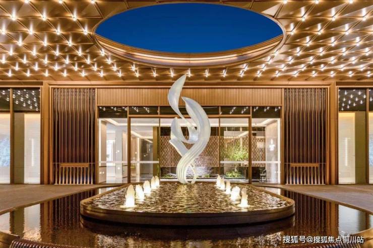 雕塑【江月潮生】静静立于镜面水景之上,绿植花卉的倒影与水中星光交相辉映,栖身于此,感受岁月变迁、自然时序,营造出一处纯粹的精神场域,让身心在空间中得以放空。以苏州古典园林的借景设计为灵感的【月影照壁】,通过窗格将园外的枫树巧妙纳入画框之中,形成天然的取景角度。