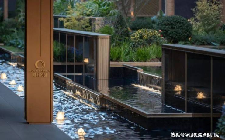 晓月沁园的归家序章,始于50米宽幅的【兰花邀月】门庭:采用五星酒店式落客设计手法,将归家的仪式感拉满。两侧铺陈开的幻影蓝奢石景墙,重金从欧洲精挑细选而来,光影里闪耀出蓝色星芒。