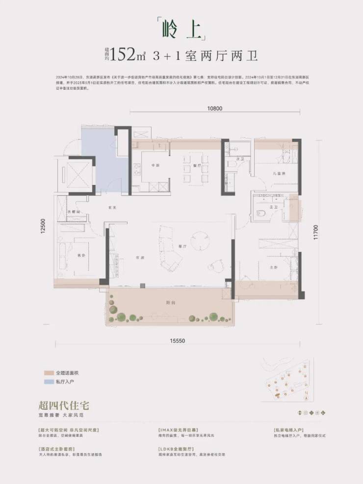 比如,建面约150㎡的户型实得面积可达约160㎡,堪比传统三代住宅一套建面约200㎡以上的户型,或者其他四代项目建面约177㎡以上的产品;