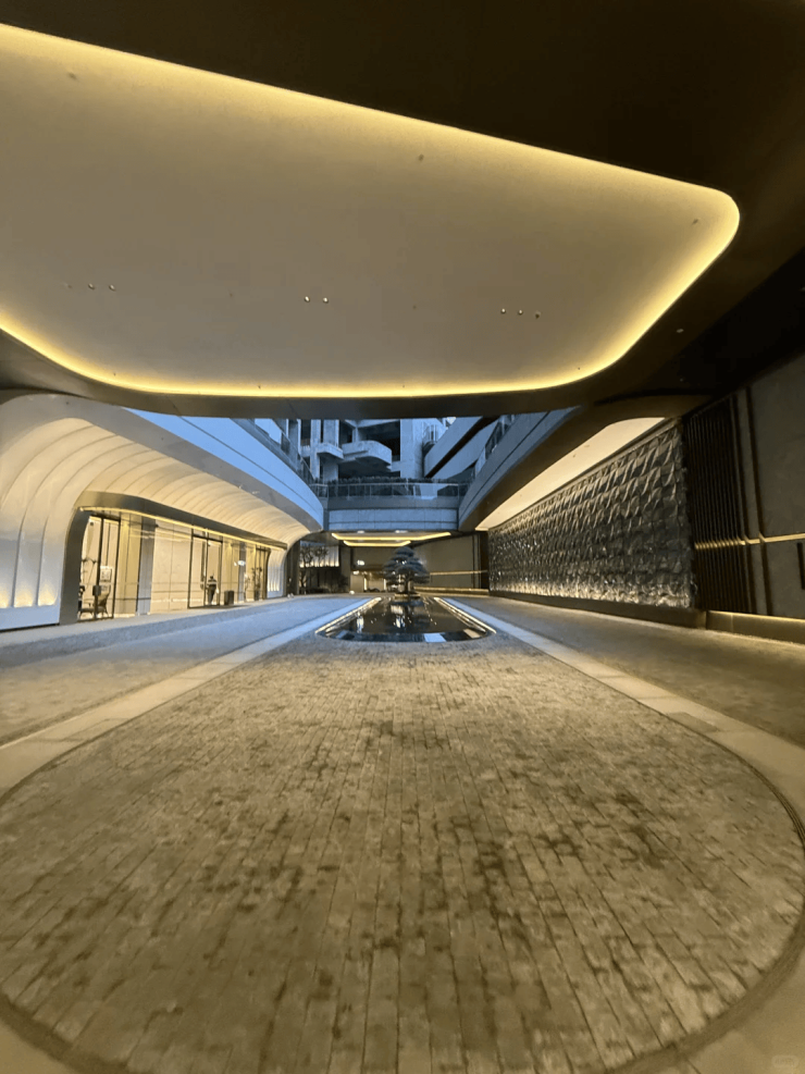 精心设计的横向灯带,顺着车道线性延伸,营造出井然有序的空间美学,其豪华程度堪比顶级酒店的大堂布局。