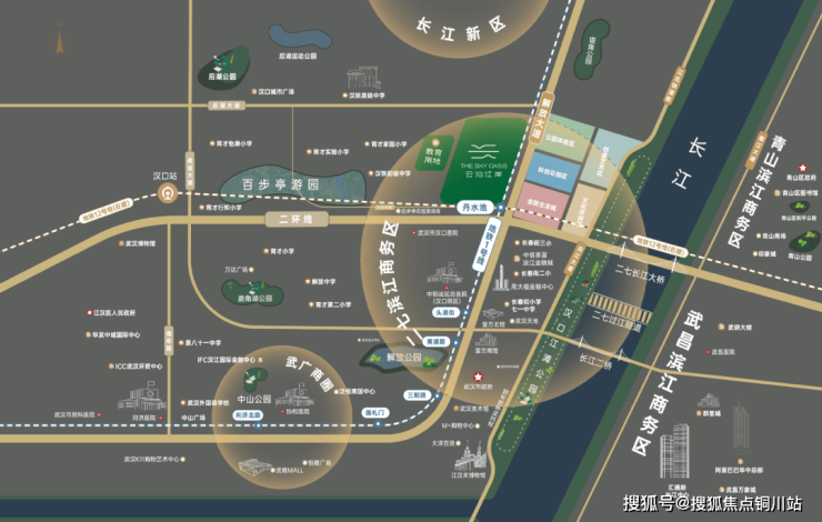 云泊江岸与二七一路之隔,同享城市资源,同频未来发展。解放大道精粹生活圈,武广、K11、协和医院、同济医院、武汉天地等转瞬即达,优越的地理位置才能更好释放产品的溢价能力。