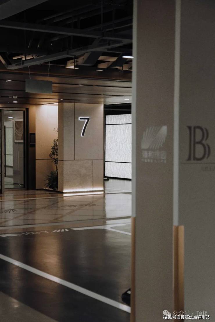 通过分色设计将停车区与车行道动静分离。落客区的顶部铝板吊顶,搭配射灯、地下大堂入口的创意小景,归家仪式感直接拉满。