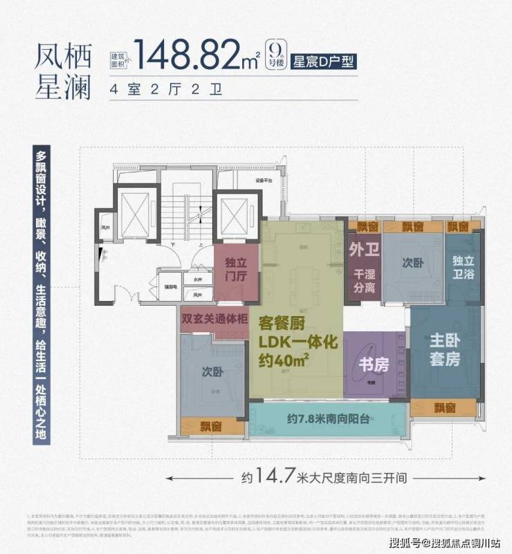 【四开间朝南】约14.7米四开间朝南,全明采光设计高颜值+高光户型,南向俯瞰微度假景观,适逸生活流淌