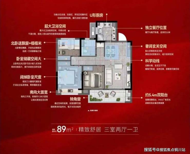 除了115㎡王牌改善户型,翡翠上城的89㎡入门户型,也十分经典。