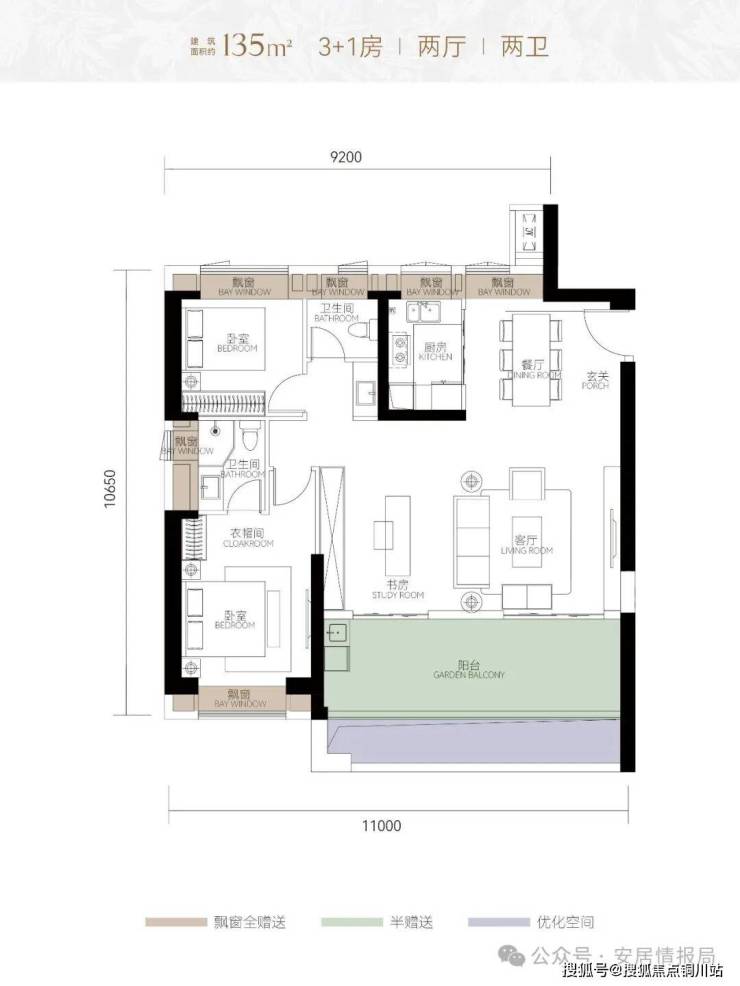 超90%得房率,大面宽主卧套房,南向联屏阳台