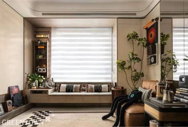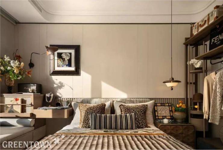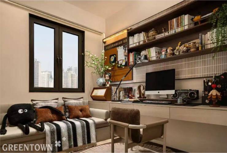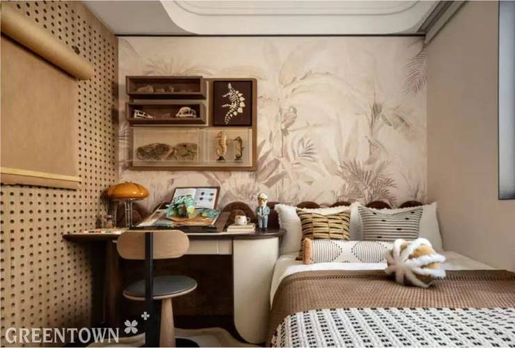 西安秋月苑96户型展示样板间以宫崎骏作品为主题,米色与原木色为基础色,点缀复古绿与奢石,自然与古典艺术的经典韵味油然而生。区别于传统布局,一体化空间和去茶几化设计,更契合年轻家庭的生活方式。