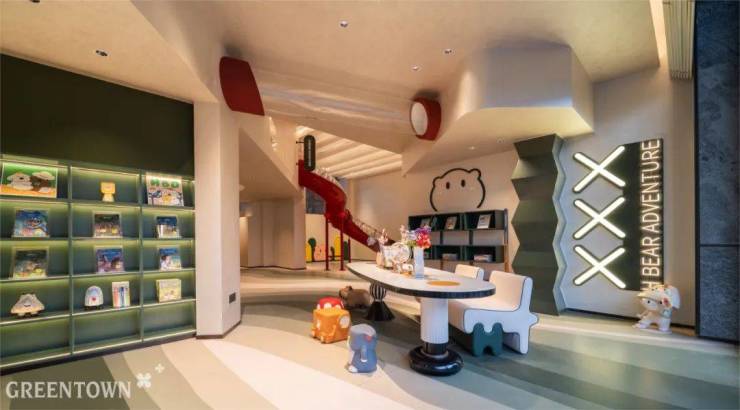 步入生活美学馆,以艺术大堂开启视觉盛宴。 “弧形”元素贯穿室内空间,光影交错间尽显韵律与和谐。金属编织屏风,手工质感与山水光影并存。曲面造型的玉石接待台,彰显现代精致与东方优雅。墙面铺陈墨染流云大理石,引领美的探索之旅。艺术楼梯贯穿各层,金属漆扶手与奢石地面交相辉映。水吧区,绿色奢石圆形吧台居中,与金属吊顶共同营造温润内敛氛围,让心灵在交谈品茗中放松。