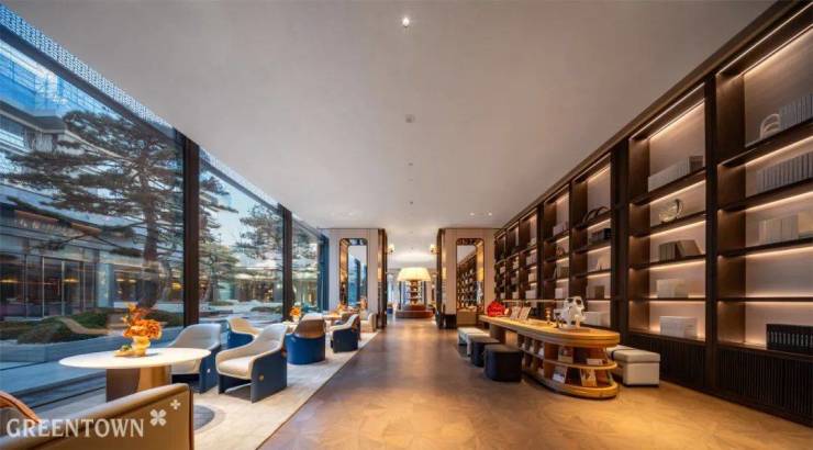杭州咏湖云庐落址于白马湖畔,生活美学馆室内设计“以水为形,以马为意”,将杭州湖滨文化与现代艺术完美结合,呈现高奢度假酒店的自在与松弛。胭粉色大理石拱门、几何造型天花板、温润木质墙面,搭配纹理华美的大理石,在材质与造型的碰撞中彰显质感,勾勒出水的灵动韵律。白马雕塑、马主题油画作品等元素贯穿始终,以 “马” 为意,将人文底蕴融入空间。