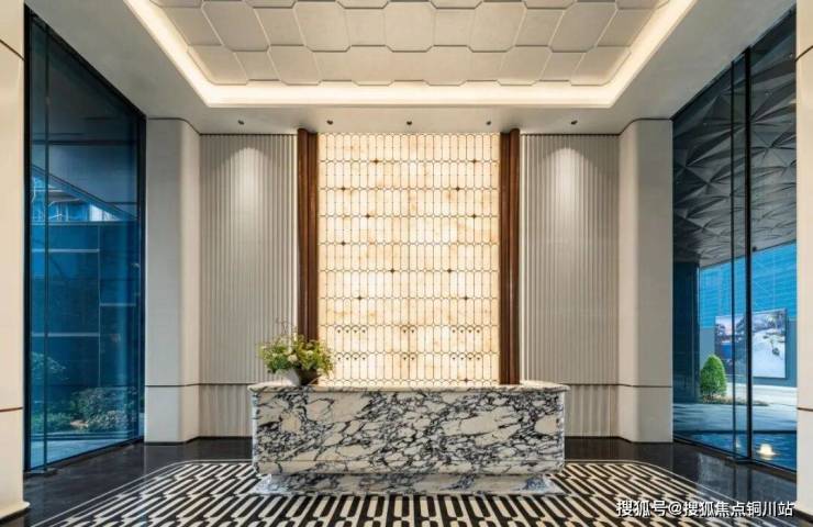大门选用经特殊工艺处理的金色材质,在不同的天光下,呈现出或温暖、或辉煌的细腻质感 ,当日暮西沉,华灯初上,门庭中照耀而出的光辉,如同威尼斯金匠将金箔锤散在空气之中,以庄重而温暖的姿态,迎候主人的归来。 龙鳞纹样被抽象提炼,化作入口水景的精致装饰,光影流过,漾起层层璀璨涟漪,更以流畅的现代雕塑语言,铸就飞龙昂首的激扬形态,成为归家第一眼的视觉地标与精神图腾。 归家仪式被铸成永恒的鎏金诗行,以恢弘的浮光跃「金」,形成归来的温度。