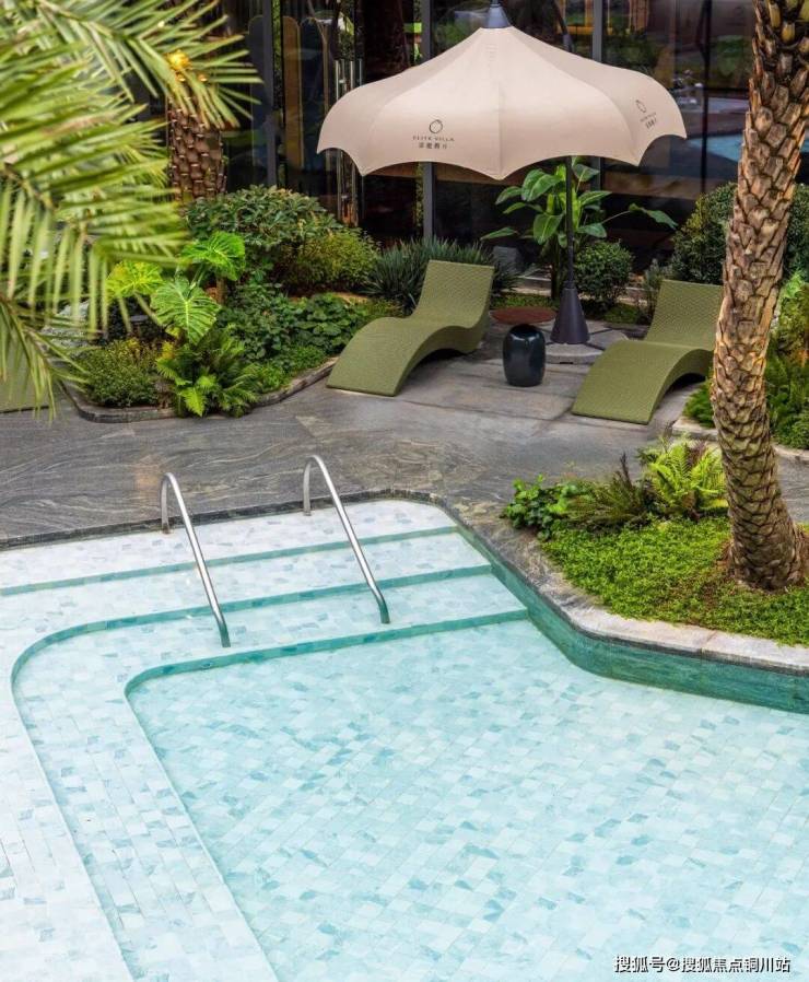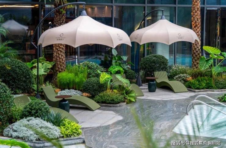 庭院内是只此青绿的基调,如同一座微缩的南半球雨林,绝非单调的植物铺陈,而是一场精心编排的立体生态艺术 ,甄选多种形态各异、色泽深浅不一的热带植被,从高大的象耳芋,到茂盛的蕨类,进行艺术化的高低错落搭配,行走其间,视线被层层叠叠的绿意所包裹,耳畔仿佛能听见雨林湿润的呼吸。
