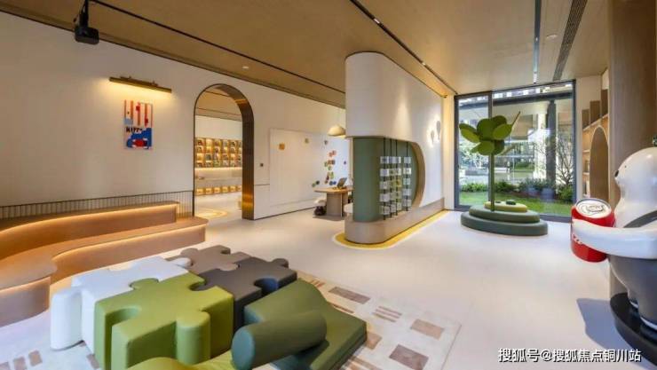 架空层不同楼栋功能不一,有健身房、瑜伽室、书吧、儿童游乐区,后期还在考虑引入适老化设施,并且贴心地设有地暖和空调。
