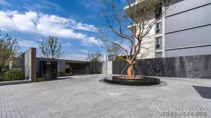 大门的北侧是车马院的入口,这里设计了一个环岛落客区,出租车或网约车可以直接从侧门进社区,在环岛的中央,是一棵超百年树龄的元宝枫,整个胸径、树形、造价都刷新了郑西景观排面。