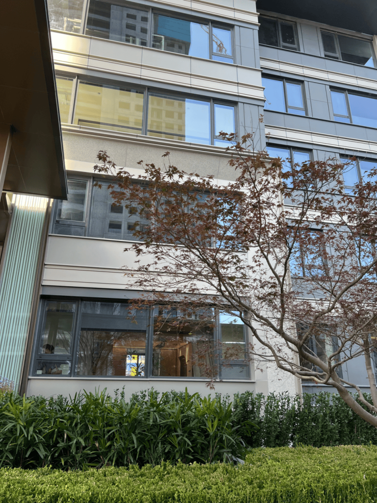 现在很多楼盘都很注定绿植搭配,云上润府的草坪边侧也有一棵高达11米的成年丛生朴树,非常典雅。