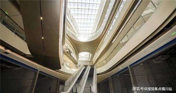 顶部的大跨度采光顶如同展开的城市天窗,将充沛的自然光引入室内,光影随日照流转,映照在流线型的金属吊顶上,勾勒出灵动的天际线轮廓,搭配动态灯光,营造出白天通透明亮、夜晚流光溢彩的双重效果,完美诠释了“出门逛公园、进门逛商场”的设计初心。