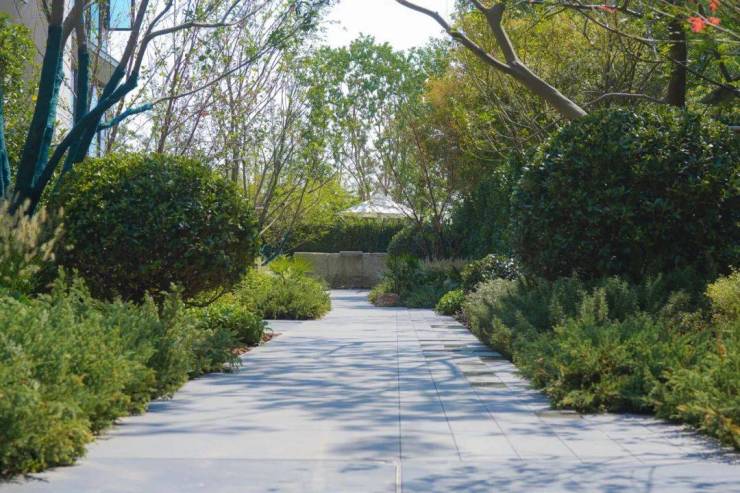 1号楼跟2号楼宅间铺装也是如此,第一次铺贴缝隙大小不均,材质质感不好,全部都拆掉重做,才有了现在这样漂亮的交付实景。