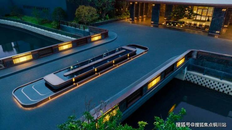 在归家仪式上,取法寄畅园渡河而归的七韵桥,加上约47米超尺度酒店式环岛落客区,以及价值不菲的巨型迎客松、爱马仕奢石等,铺陈出奢侈品级的归家空间。