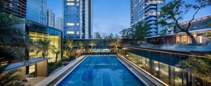 户型设计:项目有建面约 123-196 平高层、173-329 平别墅等多种户型可供选择,高层产品三面采光、直面地标,拥有无敌窗景,还有中西双厨、LDKB 客餐厨一体化,套房式主卧等设计。