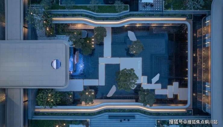 双重下沉庭院融合了海派摩登的风格设计,巧设叠瀑、景石以及优质绿植,丰富整体场域的意境感。