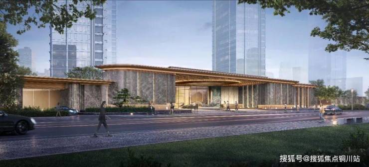 东门主入口利用沿街景墙打造跨度约80m+的山水归家超级界面,种种设计将酒店化的“门面”刻画得非常细致。