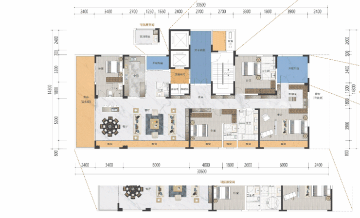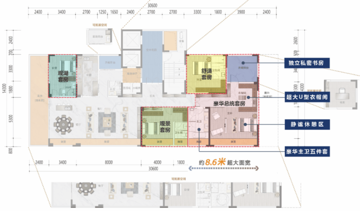 不得不说,上面两个户型完全不输、甚至赶超市面豪宅的细节,BUFF叠满,确实很牛!