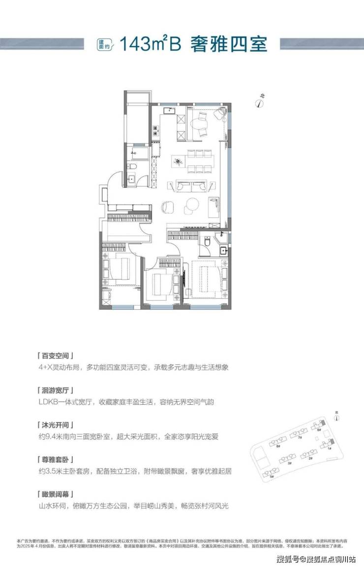 建面约143㎡阔境四房空间,东边户实际得房率高达90%以上,成为同面积产品置业性价比首选,三阳台+双飘窗超级赠送,4+x的灵动设计呈现崂山改善钟情之选。