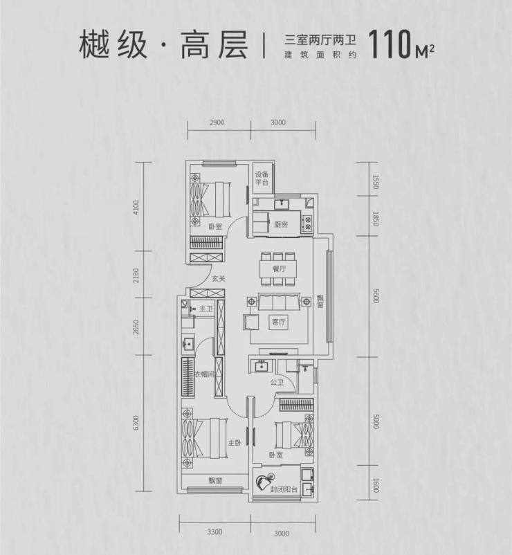 建面约110㎡3室2厅2卫