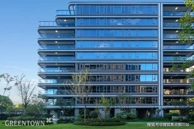倒映在波光粼粼的江水中,建筑艺术与江岸共融。凤麓和鸣外立面沿袭绿城一贯的审美,江景洋房采用国际游艇形制立面,借以顶部退台、曲面转角栏杆设计,直面县江。