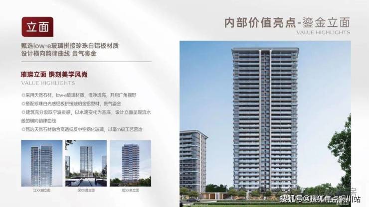 ——// 产品价值// ——「城市更新」片区未来美学新封面,以能建的品牌实力驱动产品的精进迭新本案以现代风格建筑,大面积LOW-E玻璃+铝板,不仅提升项目的立面美观,在一众老城界面之中脱颖而出。同时提振城市面貌,项目建设与城市发展同频共进。