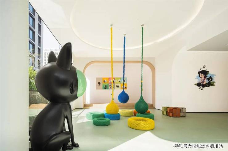 到了19#楼的猫咪主题的亲子互动区,拱形门套打破常规,DIY手工坊、游戏区、多功能区域,甚至学习角落,让家庭情感在此升温,创造力在此绽放。
