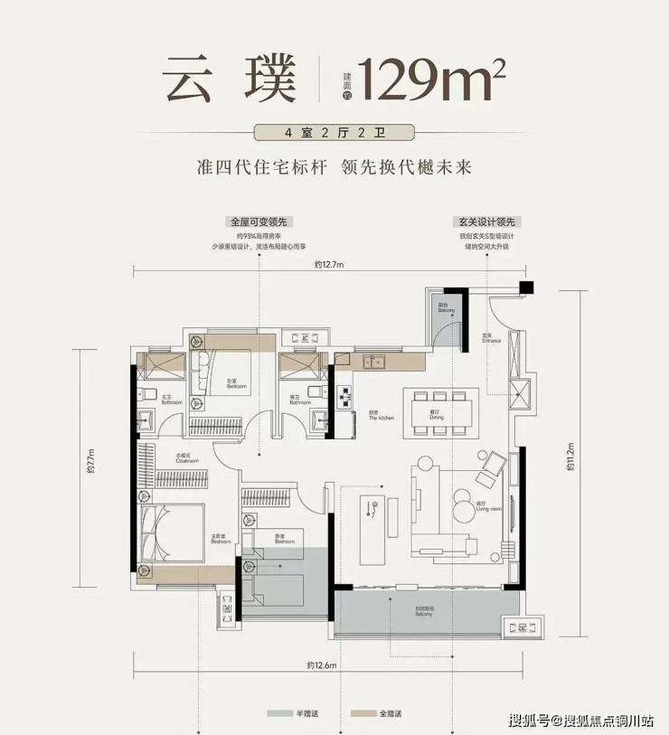 云璞户型建面约129平四室两厅两卫:此户型位于边户,南北通透,也是非常常见的边户,不过就129平这个面积段能做成四房,也是把功能性发挥到了极致!
