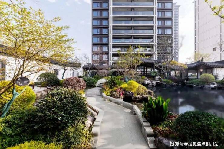 步入府门,园区景观复刻江南园林风光,归家之路赏自然之趣。山水庭院浓荫夹道,抬眼望去,廊桥水榭婉转生动,假山叠水、花木绿岛错落有致,赏花观鱼,步移景异,如同置身江南山水画中。