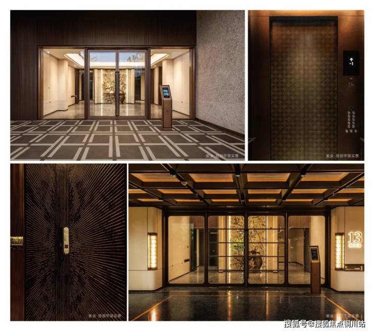 对标伦敦半岛酒店,宽大尺度的门头与酒店式落客体验共同塑造了甲第系产品的归家仪式感。整体立面肌理延续苏绣温润细腻之感,雨棚、檐口、标识等细节与构件汲取了伦敦和上海半岛酒店的做法与灵感,进一步升华项目典雅奢华气质。