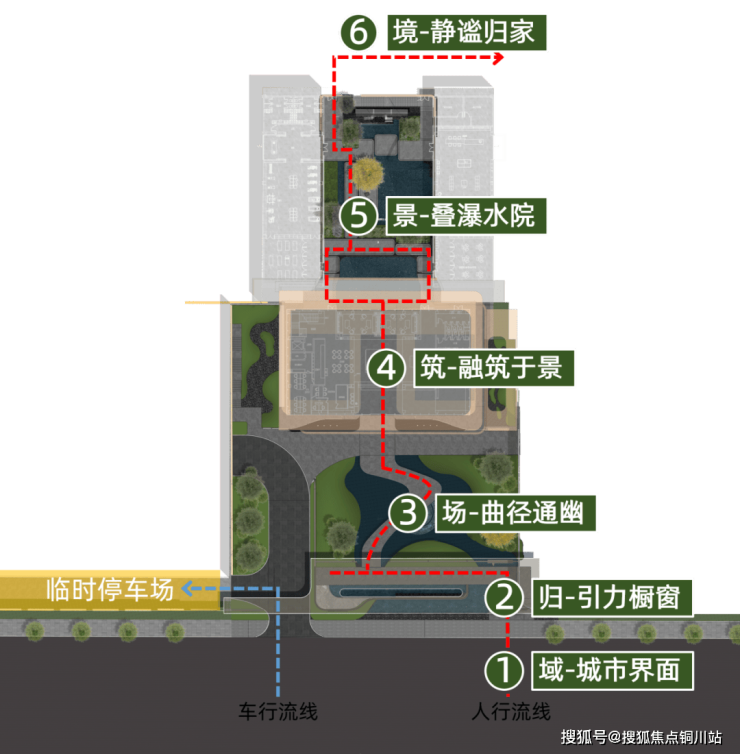 在社区景观中,还精心构筑不同的小组团,譬如在3号楼的位置,通过地势的抬高打造台地花园,在小区就能欣赏到叠水景观,丰富视觉的层次。