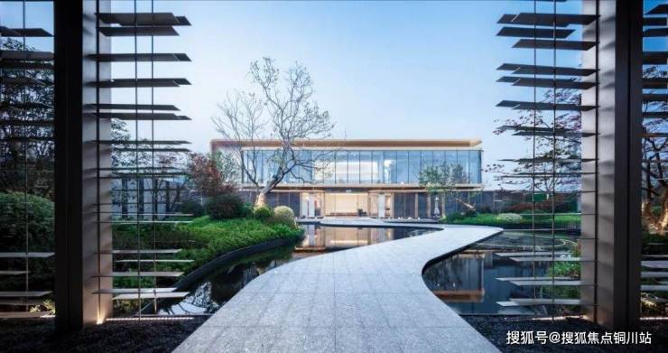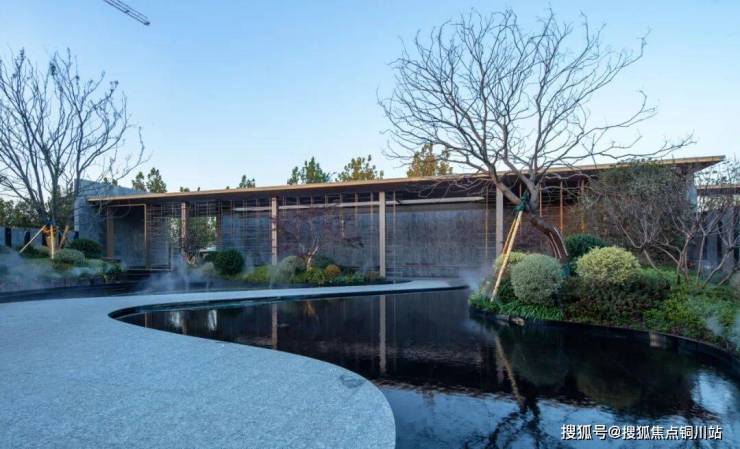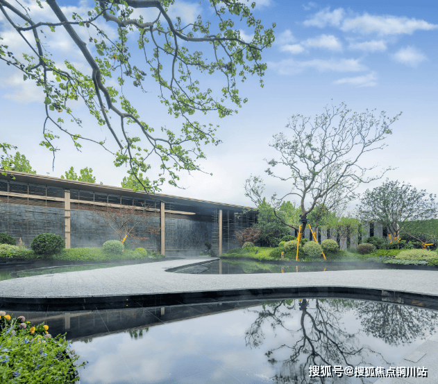 从大门到售楼处的蜿蜒小径,可以说非常“仙”!水雾缭绕,两旁有水景、乌桕、草坪,打造一种步行归家的仪式感。